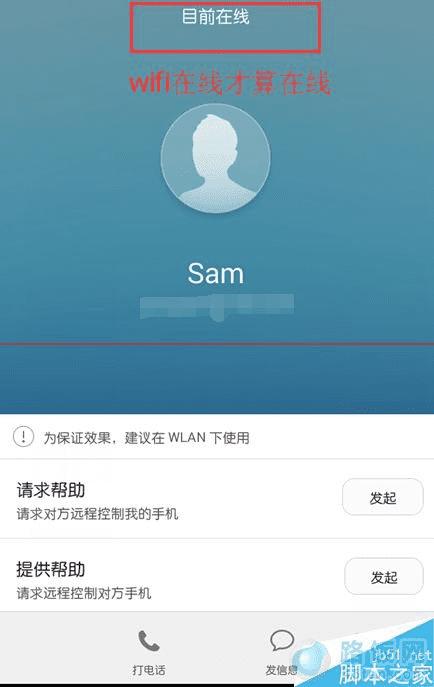 6、注意:只有对方wifi联网的时候,才会显示【在线】